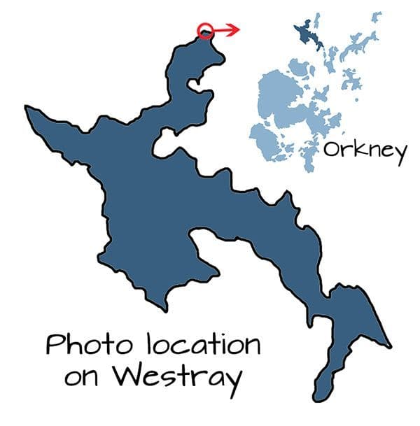 Scaan is a natural archway at the North end of Westray. This photo was taken with Papa Westray in the background.